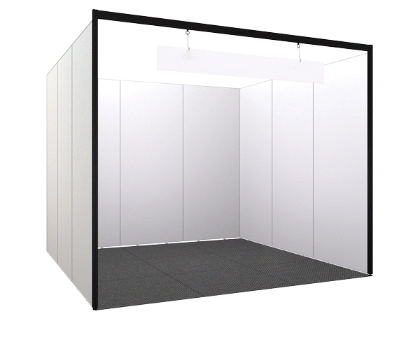 The shell scheme option is a walk on package. Each stand is 3m x 3m (9m²) and larger configurations are available by booking adjacent stands.